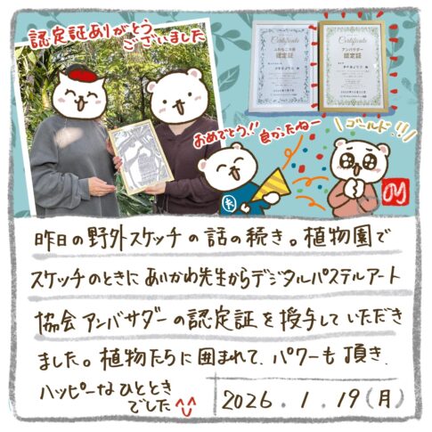 新着情報 ボールでマッサージアンバサダーになる!お散歩お絵描き部 〜デジタルパステルアート協会〜棺桶型キャリーバッグ イラスト Look! 宵の庭決めるのは、砂が落ちてから降り積もる気配年明けの山大地の妖精出番まで、休憩 絵日記 Look! ボールでマッサージアンバサダーになる!お散歩お絵描き部 〜デジタルパステルアート協会〜棺桶型キャリーバッグ個別相談スクワット解禁 タナカノリコ 絵を描く人 2019年からiPadでデジタルイラストを描き始める 心に寄り添うようなアートを制作 プロフィール お知らせ第2回 デジタルパステルアート協会 合同展2025を開催しました!2025.09.15ふわもこ年鑑2025が出版されました!2025.08.19ホームページを開設しました2024.12.01ふわもこ年鑑2024が出版されました!2024.07.15 オンラインショップ Creemaでは、デジタルパステルアート作品の販売、Suzuriでは、Tシャツ、スマホケース、文房具などオリジナルグッズを取扱中!ぜひチェックしてみてください♪ Creemaをcheck! Suzuriをcheck!