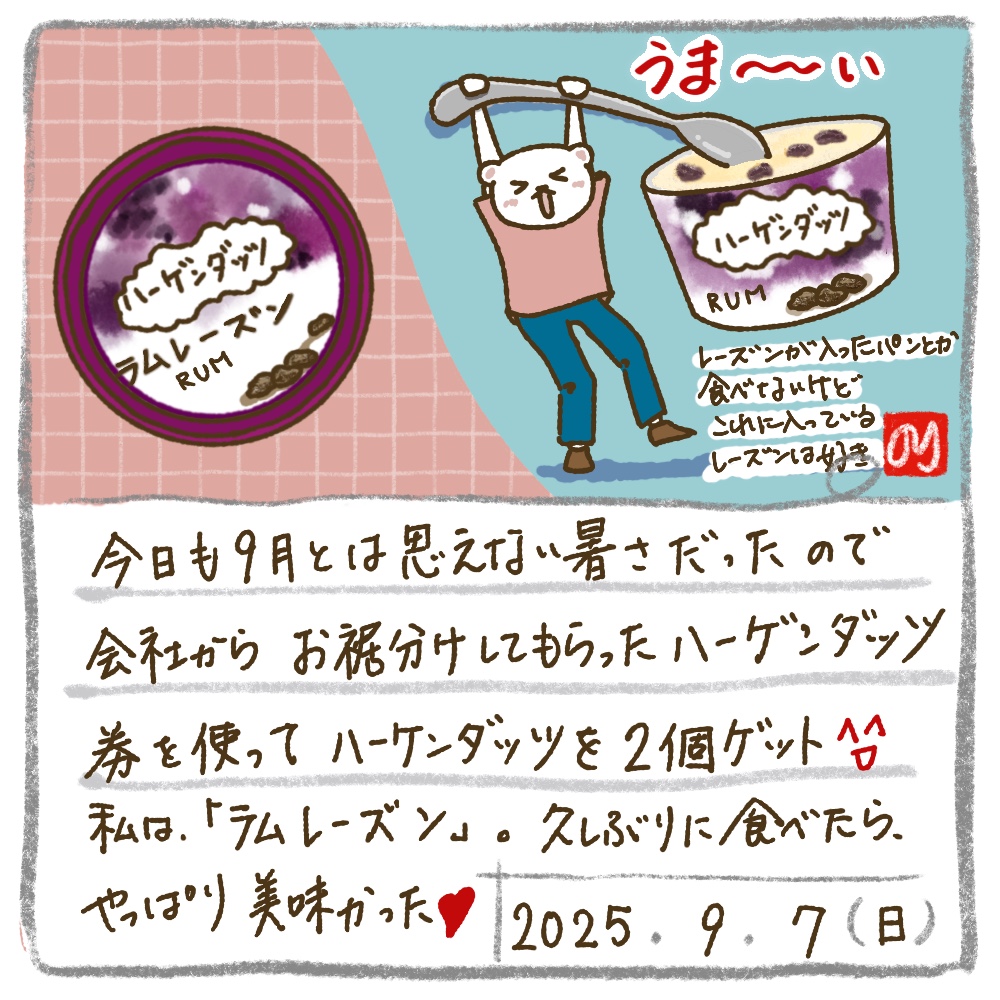 私は昔はレーズンが苦手だったので、初めてハーゲンダッツのラムレーズンを食べたときは、「レーズンって美味しいんだぁ」って感動した😊
