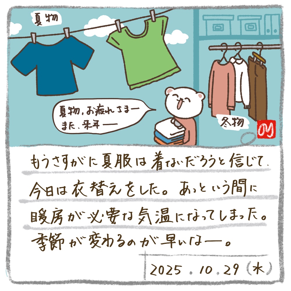 少し前から始めてた衣替え。夏物を洗濯して冬物に入れ替えてクローゼットもスッキリ✨️