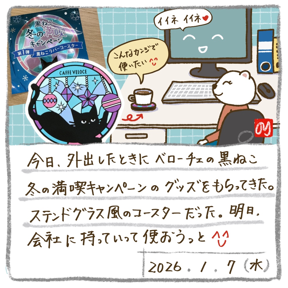 ベローチェで、黒ねこのかわいいコースターをゲット😊