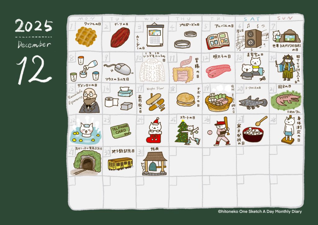 1日1絵イラスト月間ダイアリーの12月分、無事完走できました〜✨️