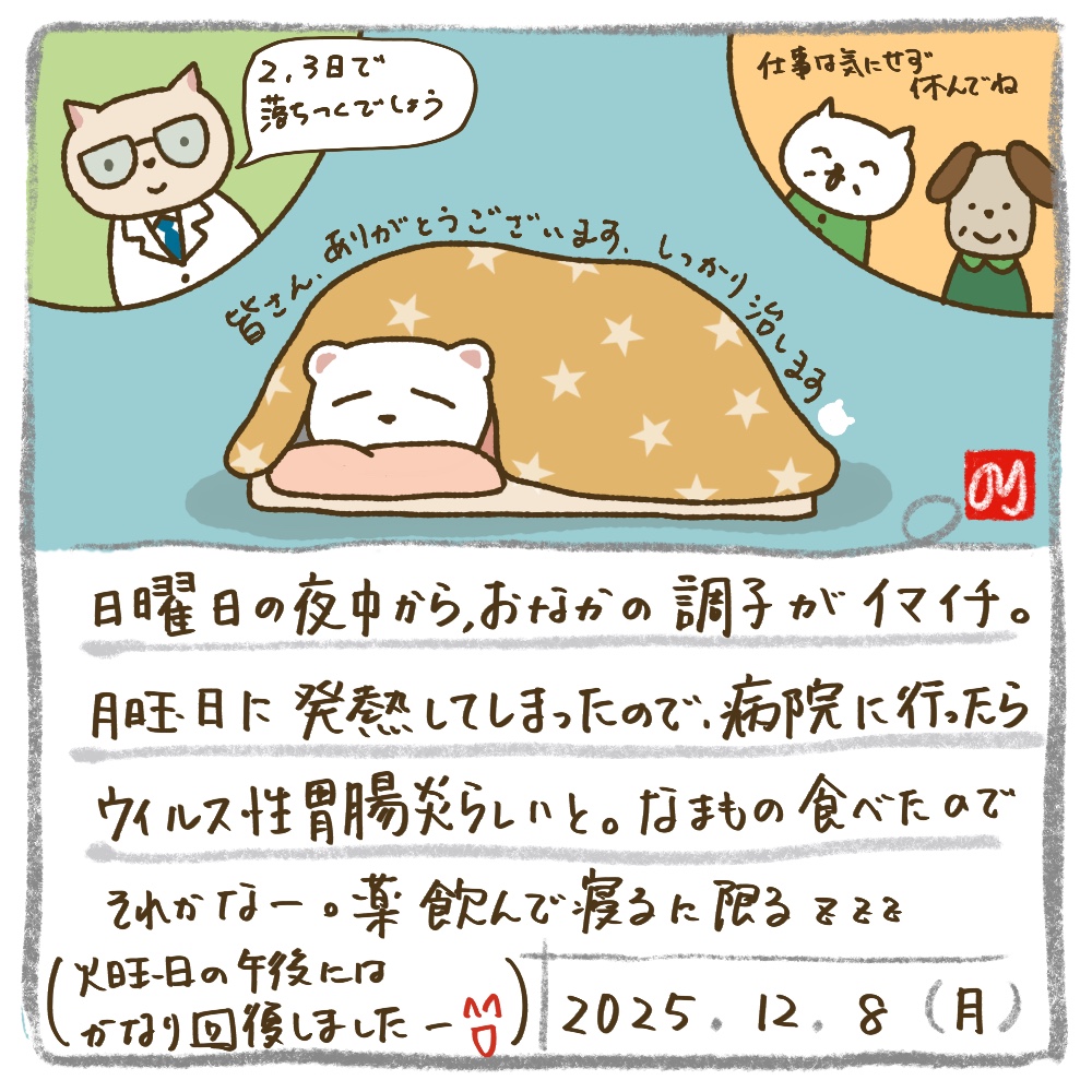 薬を貰って、しっかり寝てかなり回復しました-!年末に向けて油断せず、体調管理大事ですね✨