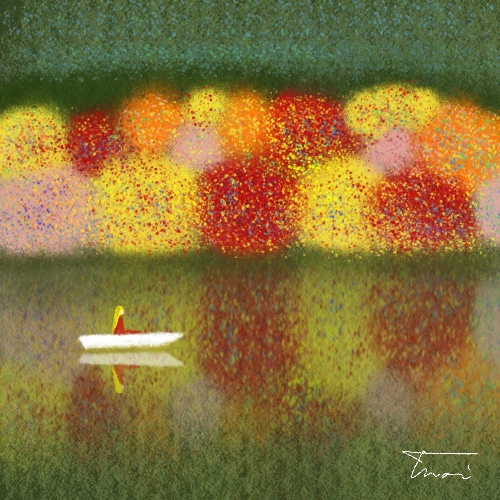 点描ブラシのテクニックを教えてもらい、ウォーミングアップ含めて3枚描きました。