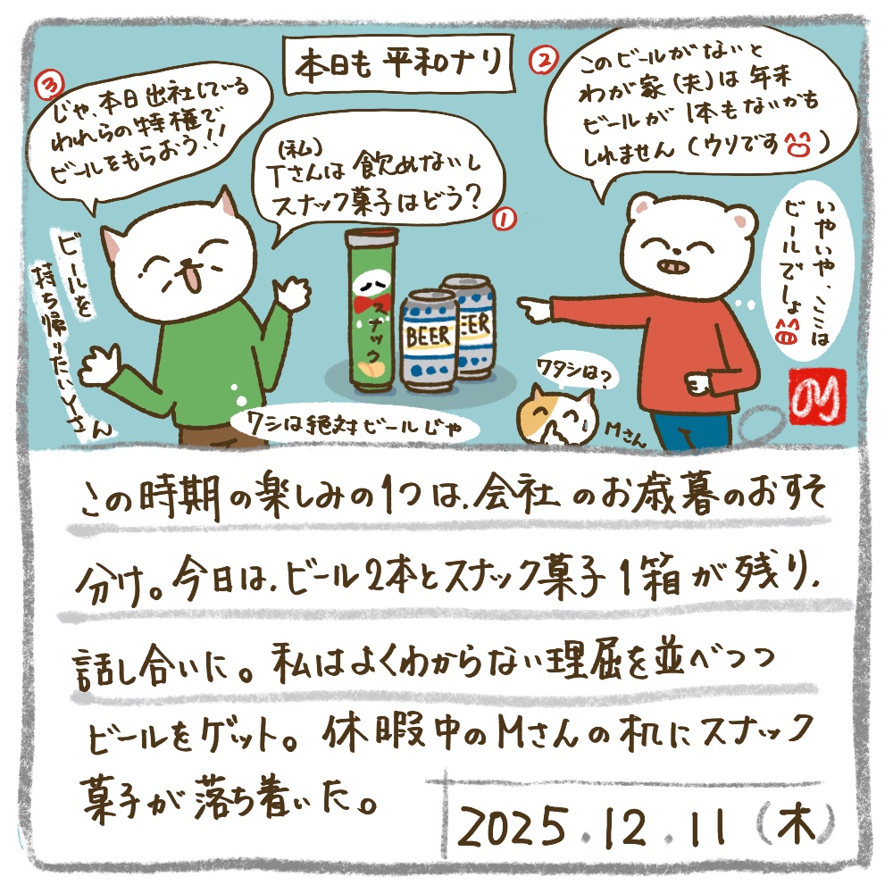 ビールは人気でみんなあれこれ理由をつけて貰おうと必死😆